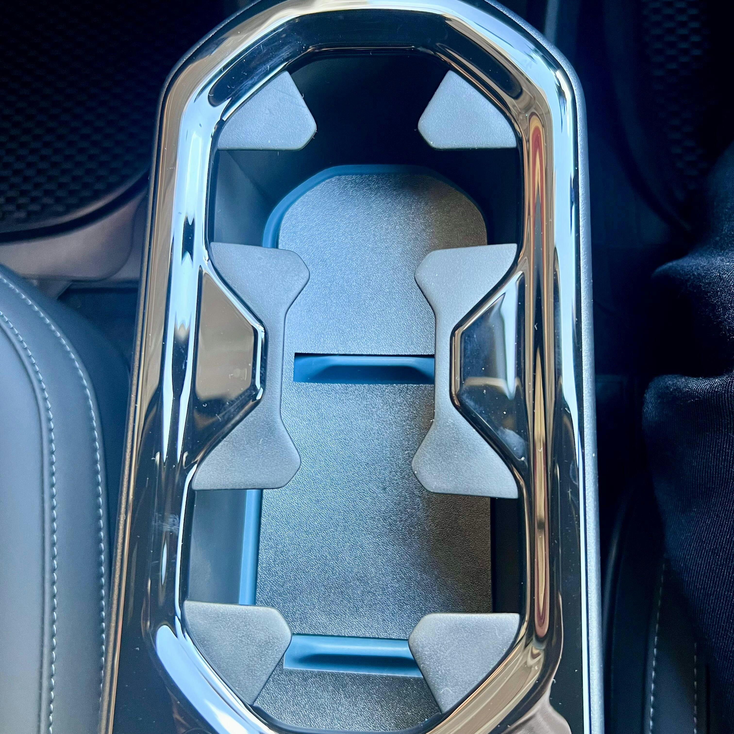 The surfaces at the bottom of the cup holder and under the centre console are a bright yellow which I really find jarring to the eye, so I had to find something to calm them down.